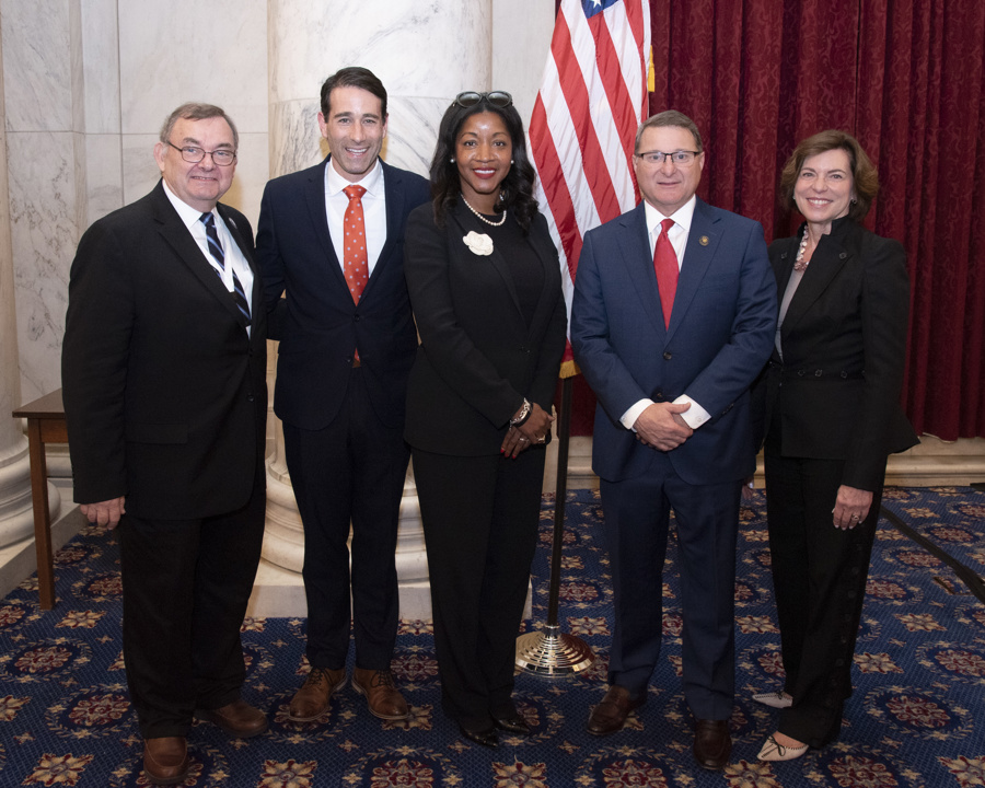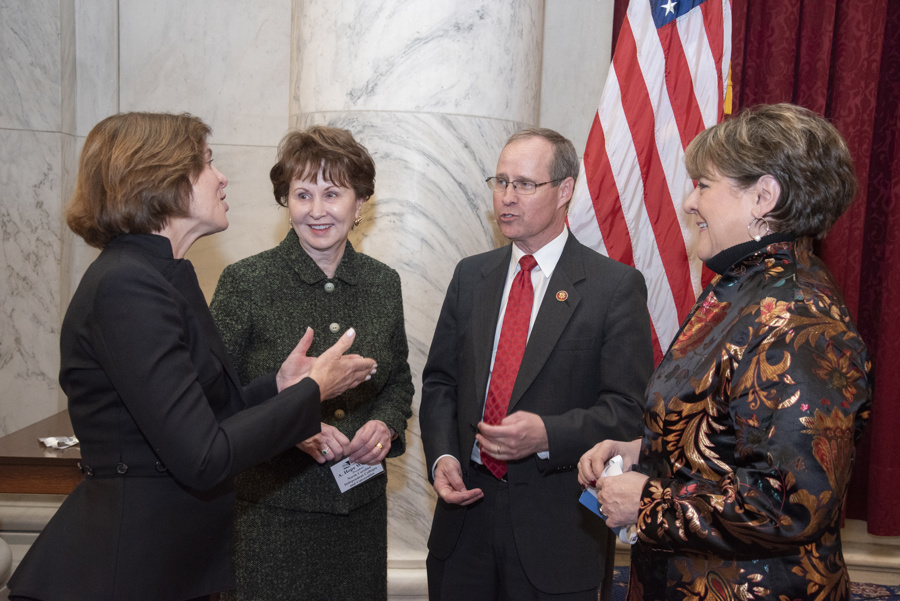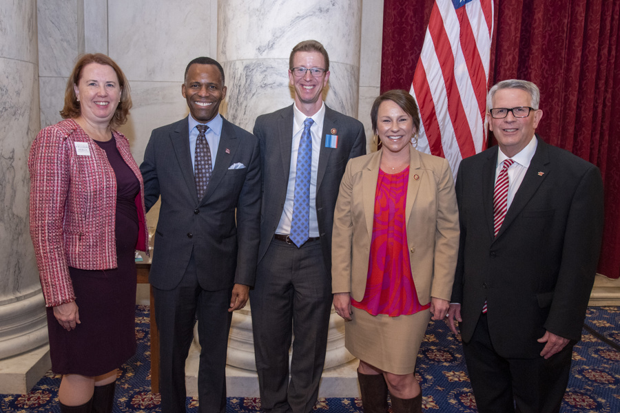 CICC co-chairs Reps. Derek Kilmer (D-WA) and Martha Roby (R-AL) flanked by ICW President Terri Standish-Kuon, University of Puget Sound President Isiaah Crawford, and Huntingdon President President Rev. J. Cameron West.